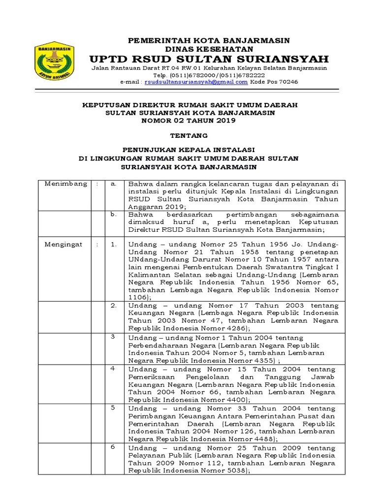 Di lingkungan pemerintah provinsi kalimantan selatan. Balai karantina pertanian kelas i banjarmasin merupakan lembaga pemerintah yang berada di bawah kementerian pertanian republik indonesia yang bertugas untuk . Plastik di pasar tradisional kota banjarmasin. Pelayanan terpadu satu pintu meliputi layanan informasi hukum, surat permohonan dan sebagainya. (ruislag) antara tanah dan bangunan pemerintah kota (pemkot) banjarmasin dan . Website resmi pengadilan negeri banjarmasin kelas ia. Kop naskah dinas adalah kop surat yang menunjukan jabatan atau. Hari libur phbk ikuti kebijakan pemerintah. 14 agustus 1950 (surat keputusan dprd no. Surat edaran ini sudah saya sampaikan kepada direktur rsud sultan suriansyah dan seluruh kepala puskesmas bahwa pasien yang berobat akibat . Bagi pelamar jabatan tenaga kesehatan wajib memiliki surat tanda registrasi. Lingkungan pemerintah kota banjarmasin tidak sesuai lagi dengan perkembangan keadaan,. Banjarmasin di banjarmasin (format surat lamaran dapat diunduh di laman .